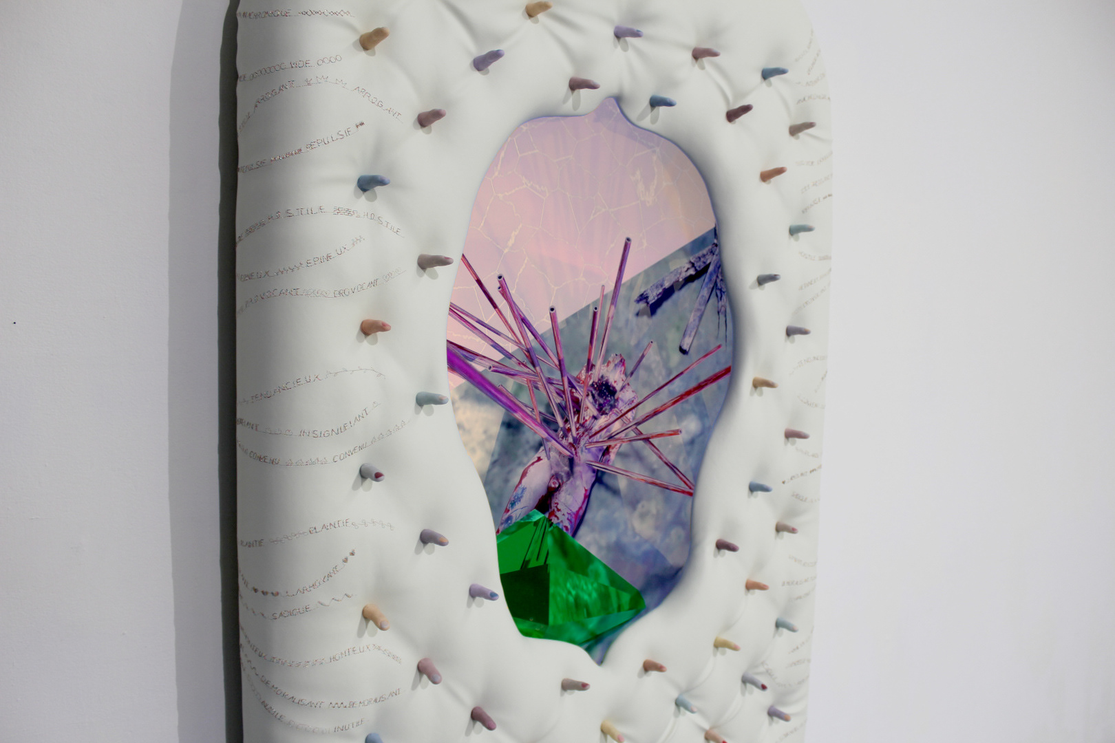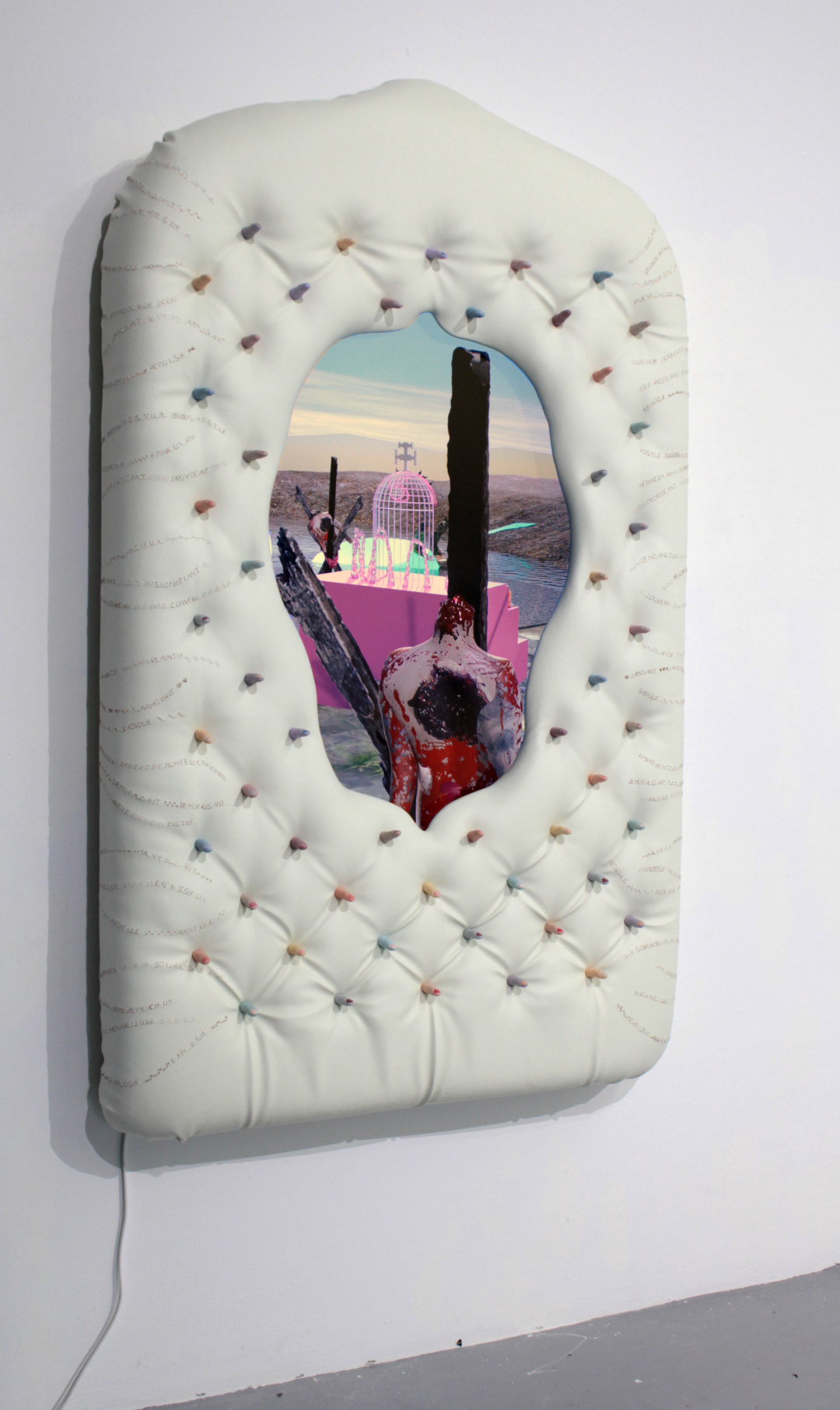 Fata Morgana est une œuvre sculpturale et numérique réalisée par Camille Bernard-Gravel, Alissa Bilodeau, Patrick Fortin et Antoine Lortie. L'oeuvre agit en quelque sorte comme un miroir magique posant un regard critique sur l’influence du politique dans l’art. La forme de la sculpture est d'ailleurs inspirée de celle du coussin capitonné de la chaise du président de la chambre des communes à Ottawa. Le capitonnage est toutefois bien particulier puisque les boutons ont été remplacés par des doigts de silicone qui pointent l'observateur. Sur la cuirette, un lexique composé d'adjectifs qualificatifs péjoratifs propre à la critique de l'art a été brodé avec un fil arc-en-ciel métallique. Ces mots font un clin d'œil à la quasi-absence de critiques négatives en art, ce qui crée un milieu où reignent des discours plutôt vides ou complaisant.