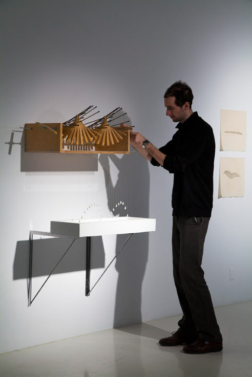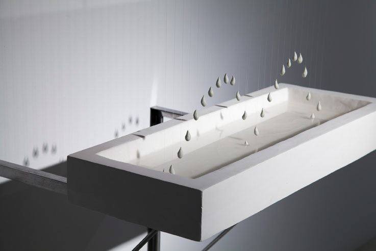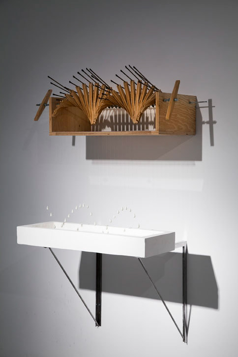 Machine à pluie, présentée en 2012 à la Galerie des arts visuels de l'Université Laval lors de l'exposition Banc d'essai.